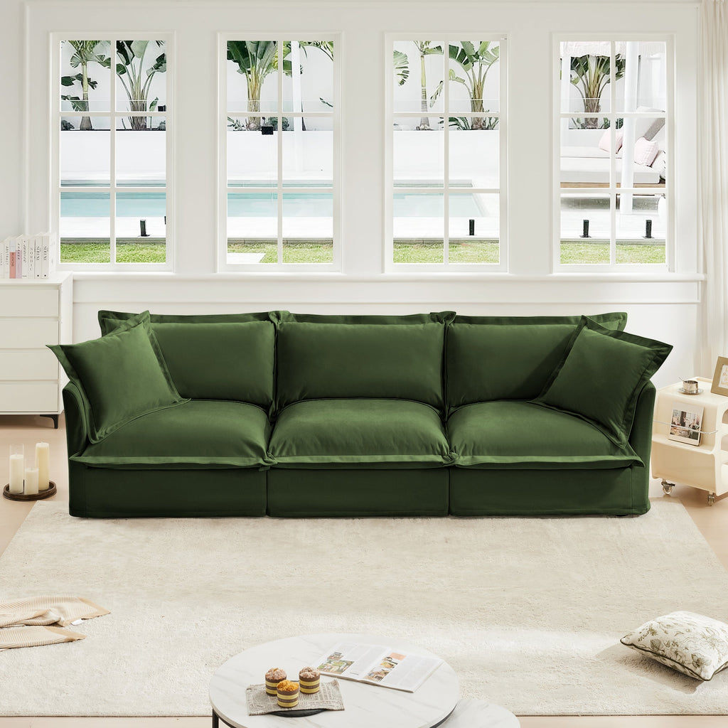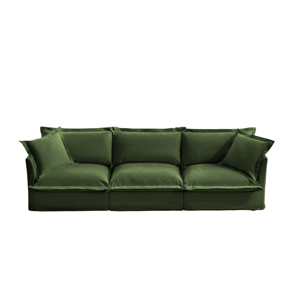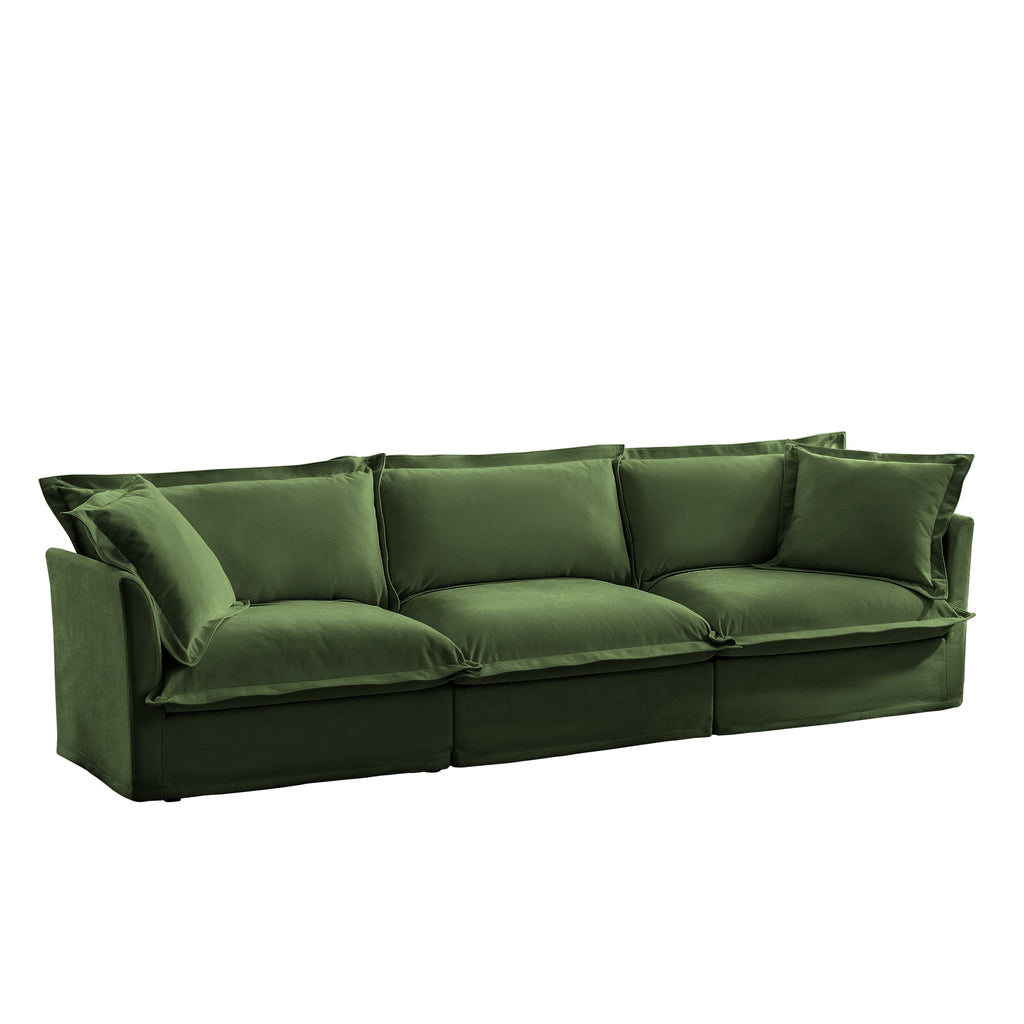 Product Name: Slipcovered Sofa Couch, Modern 3 Seater Sofa with Suppleness Armrests, Chenille Fleece Deep Seat Sofa with Soft Multiple Big Pillows, Comfy Couch for Living Room, Apartment,Chenille Fabric, Green.